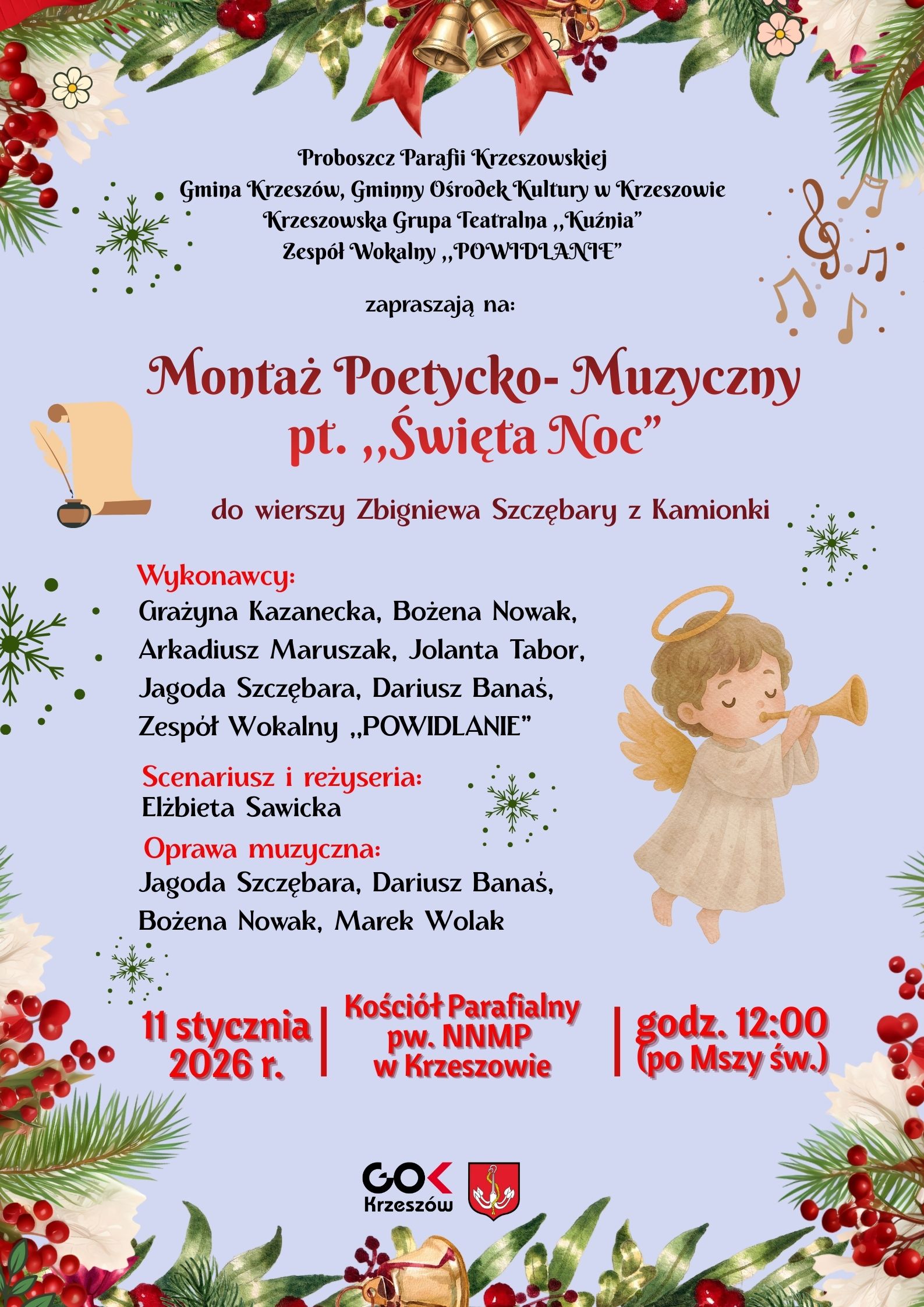 Zapraszamy na ,,Montaż Poetycko- Muzyczny” pt. ,,Święta Noc”
